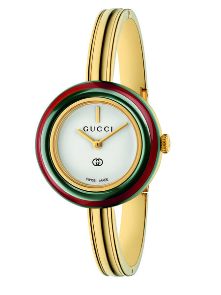 The case is a little bigger (28 mm), the feel a little more polished, with yellow-gold plating and a matte white dial that keeps things quietly luxe. It’s archival, yes, but not nostalgic. It’s more like Gucci taking one of its quirkiest ideas and giving it grown-up confidence.