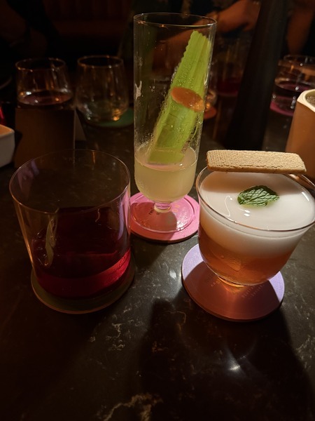 At some point they took us behind the bar, which is when you realise this place is basically a very chic science lab. There’s a Girovap quietly distilling herbs into these insanely concentrated essences. Juices are centrifuged instead of heated so they stay bright. Vinegars ferment for weeks. Everything is timed, temperature-controlled, tested. There’s barely any lime; acidity comes from house-made vinegars and fermentation instead of shortcuts. Even the “skinny” cocktails don’t feel like punishment (no sugar)!