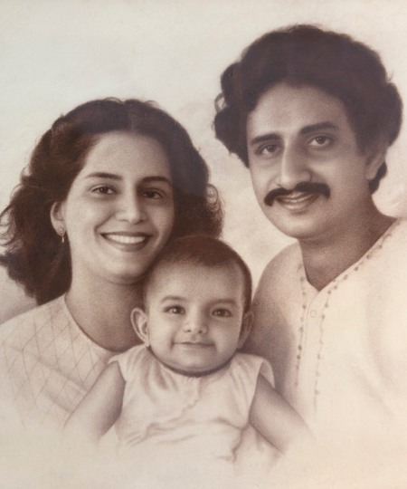Vihangini grew up on stories from the Mahabharata; Krishna and Ram woven into everyday life, spoken about as naturally as family history. Her training, however, was rooted in discipline. Under the late Shantaram Badakere, known for creating portraits of Mahatma Gandhi and Jamnalal Bajaj, she learned portraiture the rigorous way: structure first, prop9ortion always, and hours of sketching to understand bone, light and shadow before attempting expression. Today, she works primarily with conté crayons, building faces through slow layering and tonal precision. The detailing is deliberate and exact, skin softened through gradation, fabric given weight, eyes sharpened with light, resulting in portraits that carry an almost photographic presence.